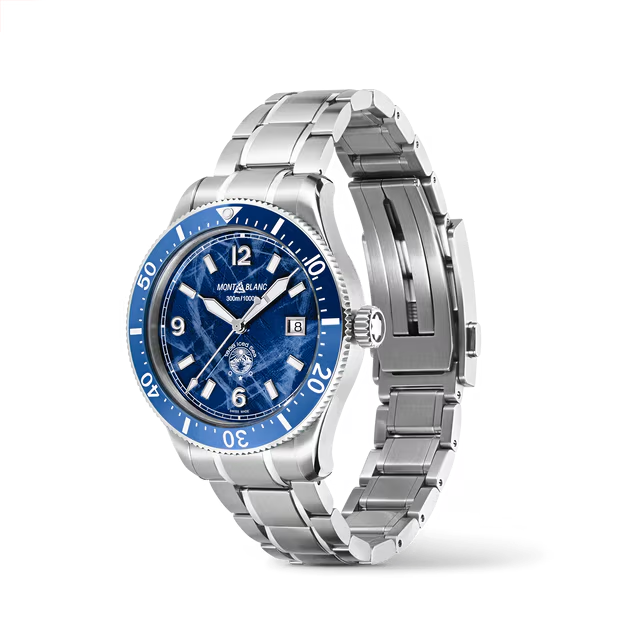 De Montblanc Iced Sea Automatic Date (modelnummer 129369) is een stijlvolle polshorloge met een diameter van 41 mm. Het heeft een zilverkleurige band en een metalen kast. Dit horloge is voorzien van een datumaanduiding en is perfect voor dagelijks gebruik. Draag het bij formele gelegenheden of bij een nette casual look voor een tijdloze elegantie.